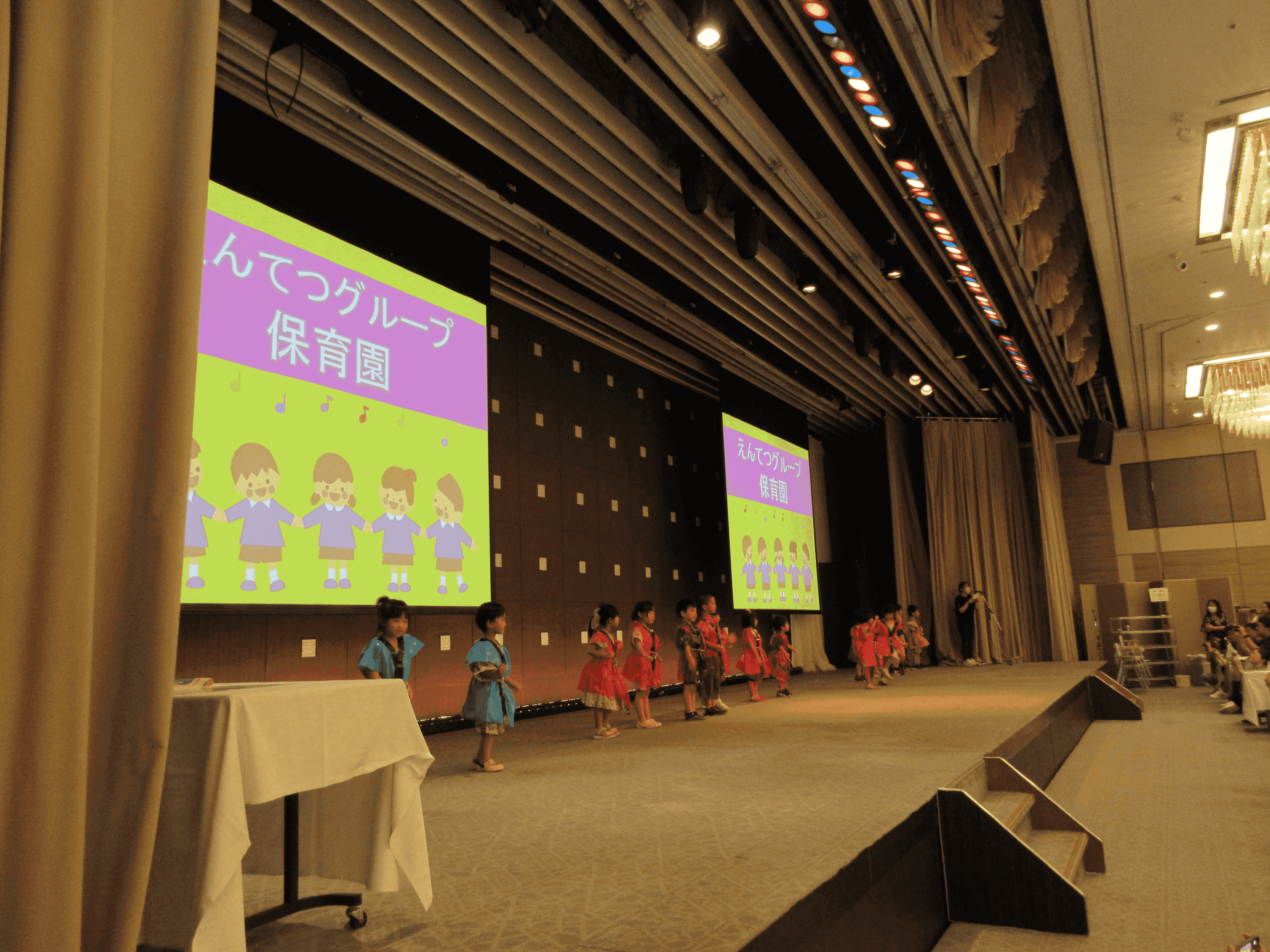 8月7日(月)~ 8月11日(金)ホテルコンコルド浜松にて遠鉄グループ納涼祭が4年ぶりに開催されました。遠鉄グループ保育園では8月8日(火)4歳以上の園児を対象にステージイベントに出演しました。お家の方やたくさんの人達が見守ってくれる中朝の会のダンスを元気いっぱい笑顔で披露できました。楽しい夏の思い出ができてよかったね!