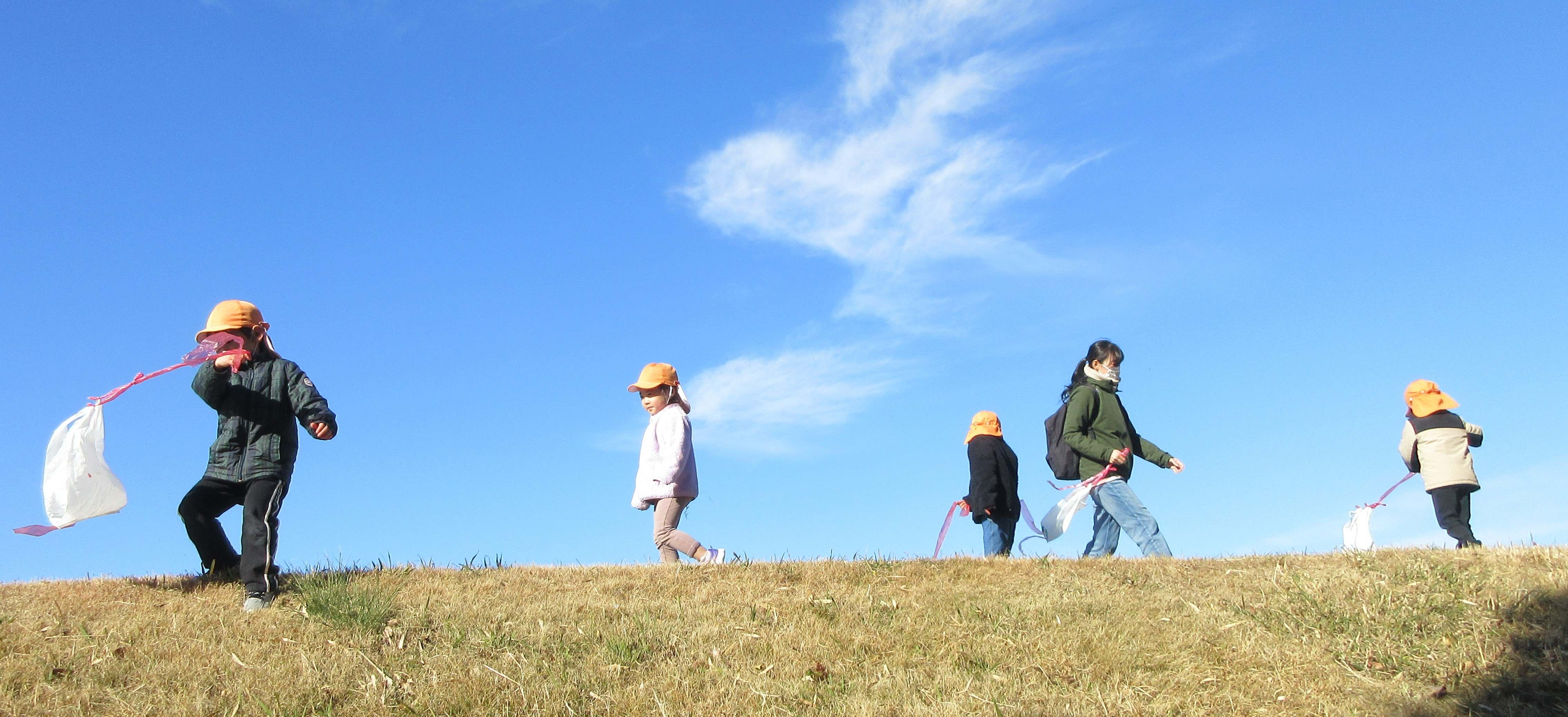 澄み渡った青空の下、いわた保育園で凧揚げ遊びをしました。ビニール袋で作った自分だけの凧にみんな大満足!とっても可愛い凧ができ凧揚げをするのを楽しみにしていました。寒さに負けず元気いっぱい走って風になびく凧を見た時は嬉しかったね。穏やかで気持ちのいい新年のスタート!今年1年 元気で楽しく過ごせますように!